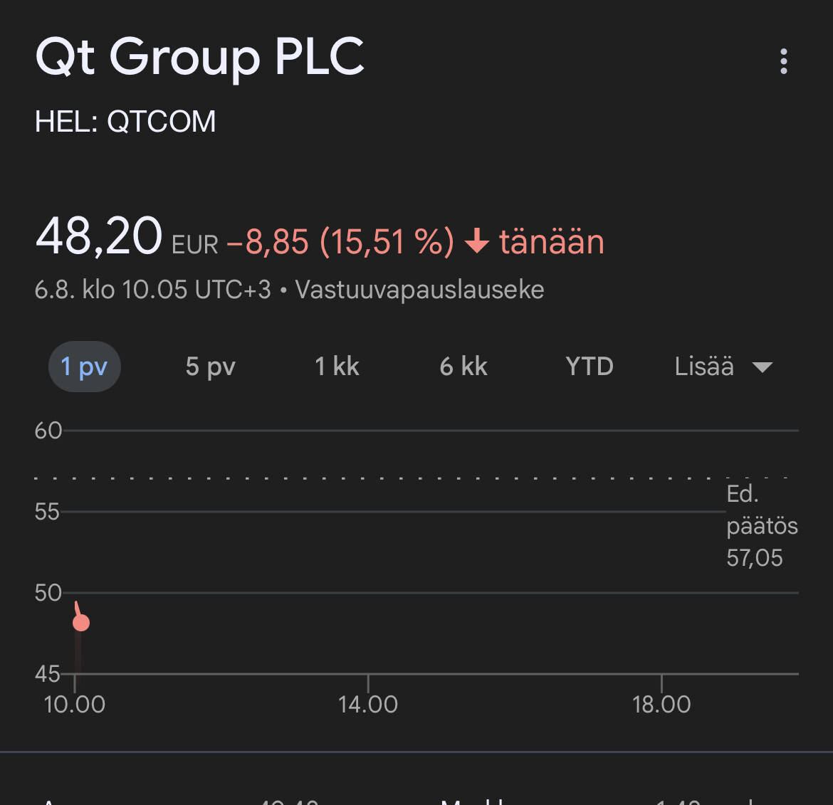 Well, it doesnât look too bad when weâre getting into a trade with 50âŹ. I set my limit order so low that it would have to drop another few tens for it to be triggered. I tried to see if there would be a massive panic, but I donât actually want to own Qt.