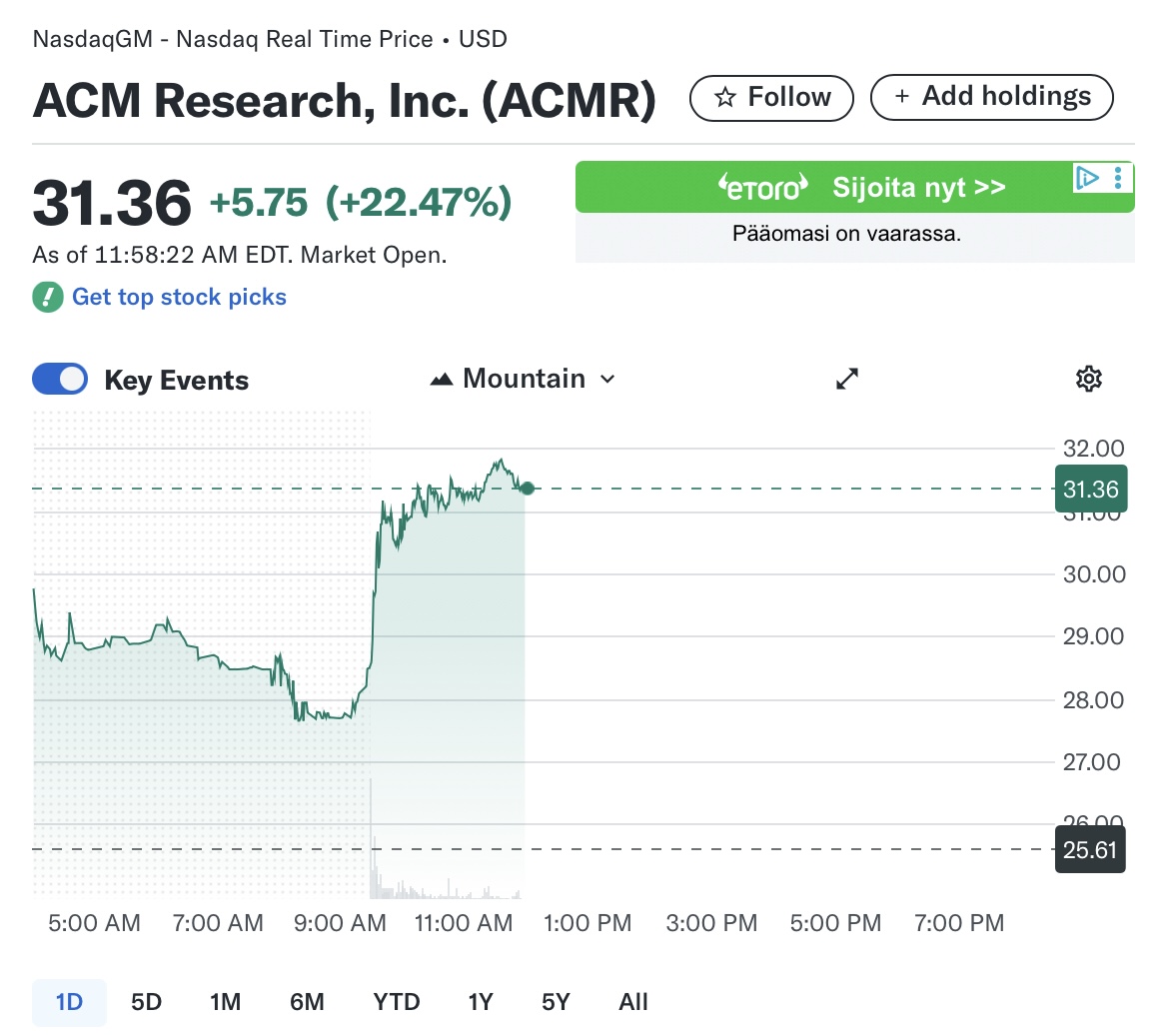 Pæne stigninger i ACM Research, men mit kursmål var allerede 50 dollars, så der er stadig plads til vækst. ACMR’s værdiansættelse og multipler er meget lavere end hos andre halvlederfirmaer (f.eks. NVIDIA, ASML, AMAT, TSM).