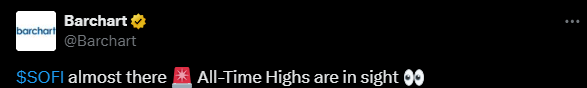 Lad os se, hvordan situationen udvikler sig i løbet af et par timer, men nu er det virkelig tæt på, at SoFi lukker i ATH-niveauer ![]()
