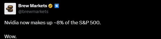 Her er et tweet om Nvidias stigning og dens andel i S&P 500 ![]()