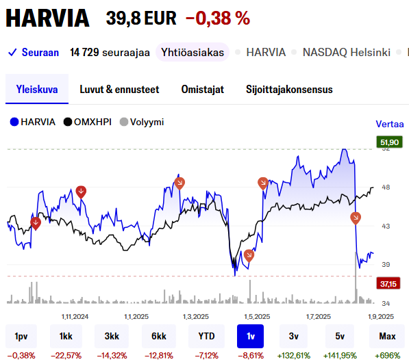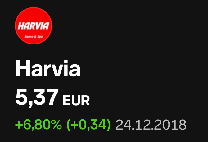 Sandt, fuldstændig fakta. I 2021 var Harvia en aktie på over 50€ under julesaunaen.