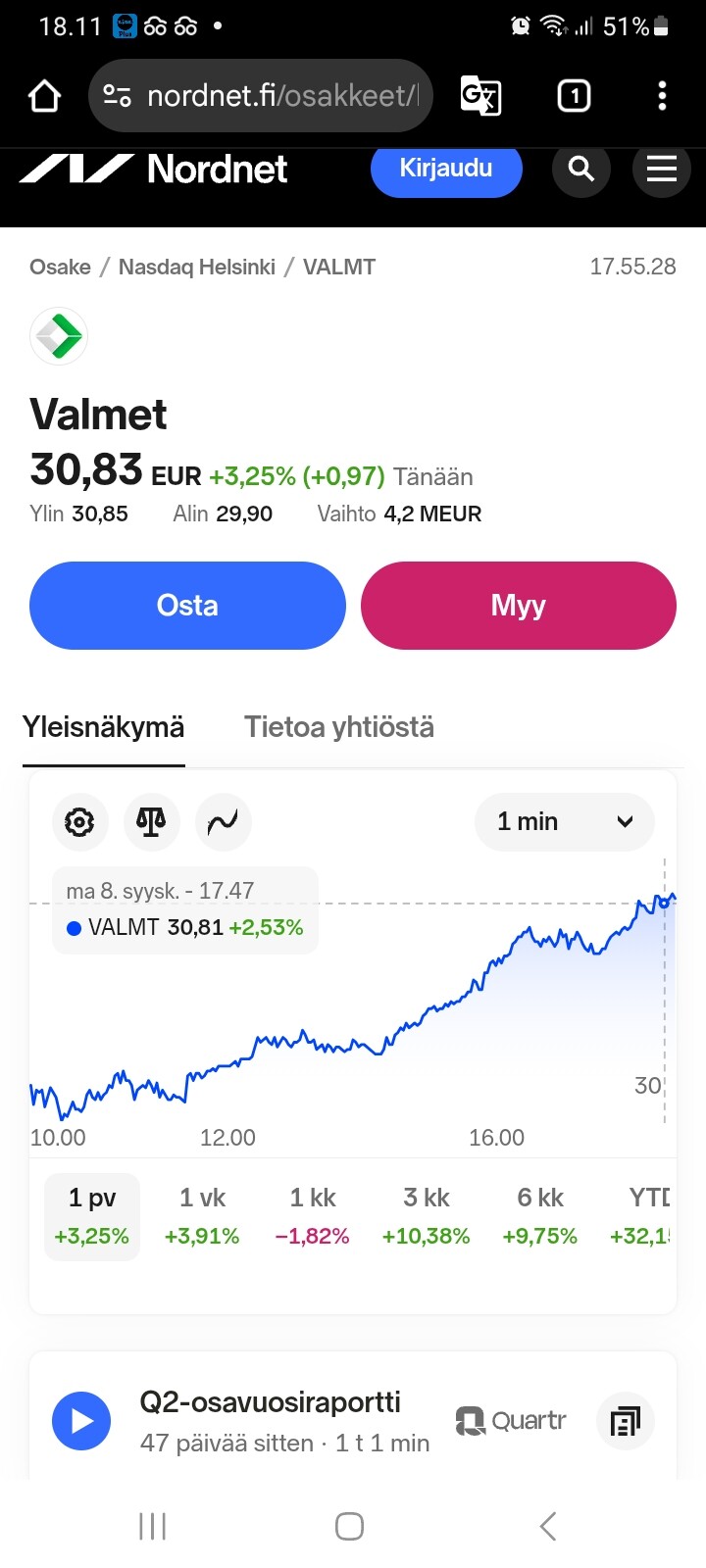 Ja nyt tuota jumitetaan .. vähän sellaisia nothingburgereita tuo ja Turkkiin liittyvät jutut mutta ainahan tuo kurssi reagoi jyrkästi vaikka firma on jo halpa.