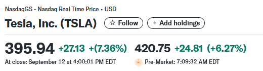 Suurin syy nousulle taitaa olla kun Musk osti perjantaina noin 2,5miljoonaa Teslan osaketta ja tämän päivän nousu perustuu tämän tiedon julkistus sijoittajille. Vaikea mennä sanomaan olisiko nousutrendi ollut näin voimakasta ilman tätä.