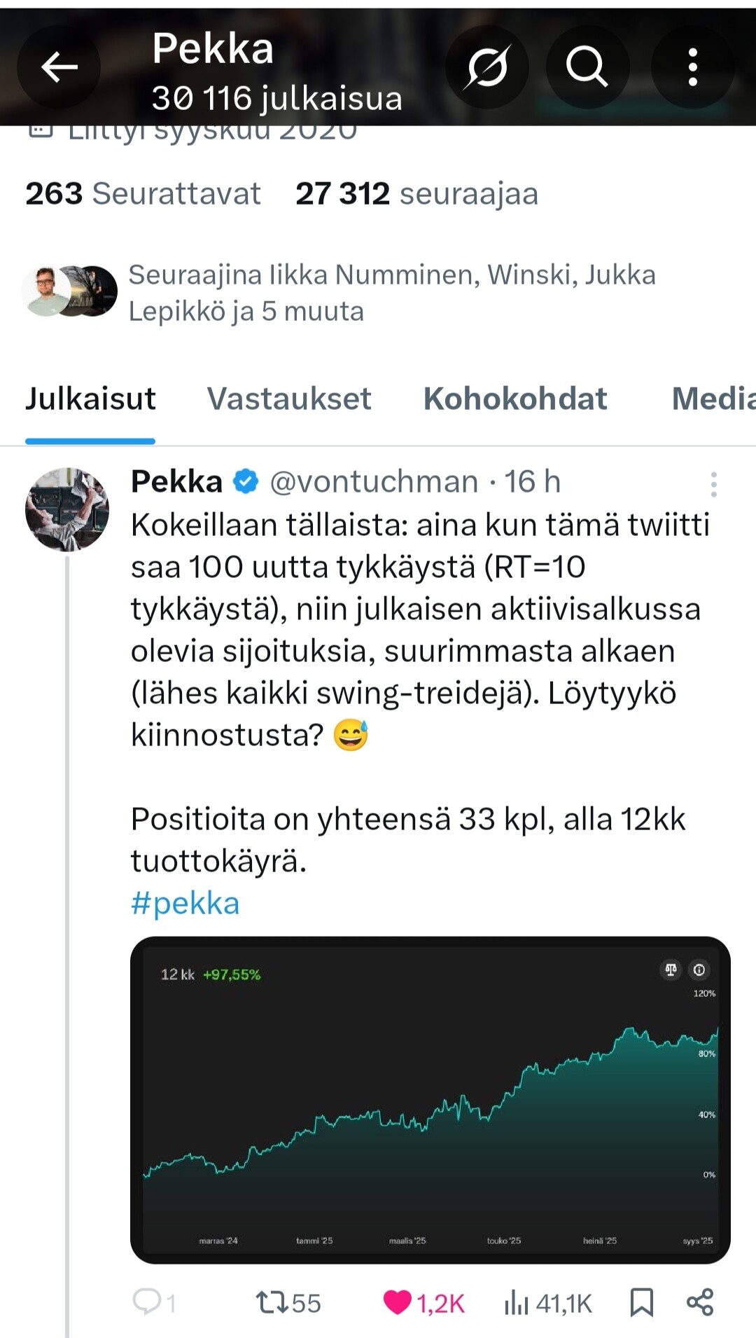 Olikohan tämä X:n Pekan/“Vontuchman” ilmiö😅 Canatu listalla kahdeksas. Pienivaihtoinen osake kyseessä. Canatu tällä hetkellä 4,3% nousussa.