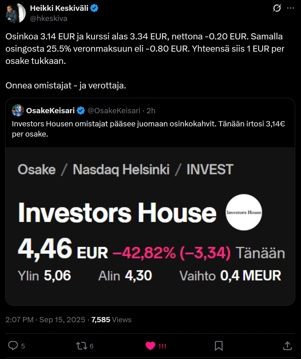 Mitä äijät tääl sekoilee! Etkö ymmärrä että osinko on ilmaist rahaa ja sijoittajan palkka!