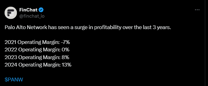 The main point of the tweet is apparently that many compare Palo Alto and Fortinet, but the latter’s advantage is a so-called hardware-centric model, which apparently engages customers better and gradually increases service margins.