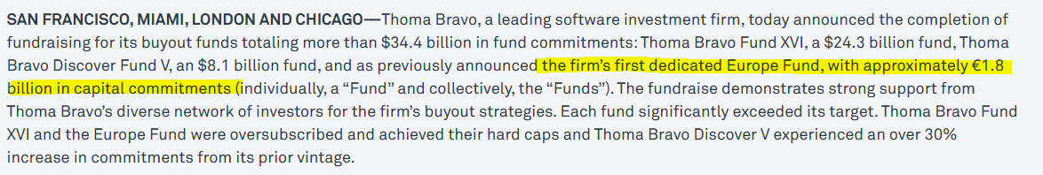 Private equity firm Thoma Bravo, which is very active in corporate arrangements in the cybersecurity sector, has raised over 34 billion more in capital for future deals: