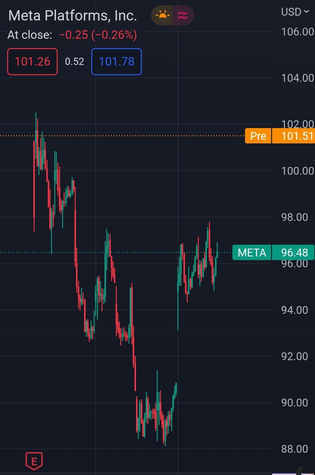 “Buy the rumors” entry tehty Metaan maanantaina. Nyt vuorossa “sell the news”. Järkevä kohtaa ottaa profittia varmaan 102 gab fillin vastustaso. Missä voisi olla seuraava target? Ajatteli myydä osan ja katsoa minne se nousee. Nyt sisällä 105 toinen myynti target, mutta se nyt ei perustu oikein mihinkään.
