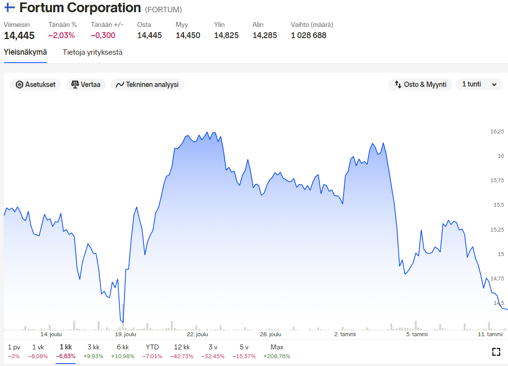 Mites toi Fortum? Joulukuun puolivälissä tästä 14,30-14,40 otti käänteen. Kestäiskö tää taso nytkin?