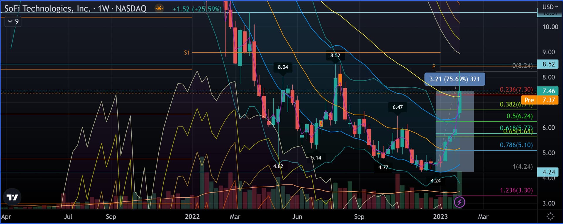 De største drivere for stigningen har sandsynligvis været et højt short-niveau, det WSB-orkestrerede short squeeze og faldende PCE. Hvad mener du gør SoFi til en førsteklasses fintech?