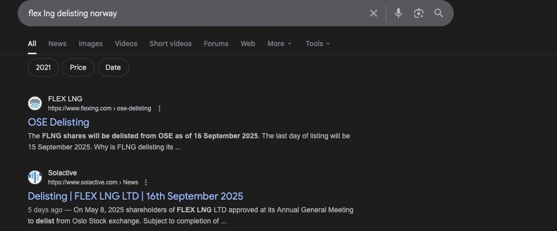 The FLNG shares will be delisted from OSE as of 16 September 2025. The last day of listing will be 15 September 2025.