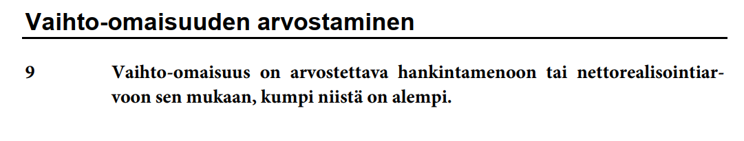 Normaalioloissa Kamuxin vaihto-omaisuus vaihtuu nopeaa tahtia ja enimmäkseen tehdään voittoakin, joten se on tällöin arvostettu aina hankintamenoonsa.