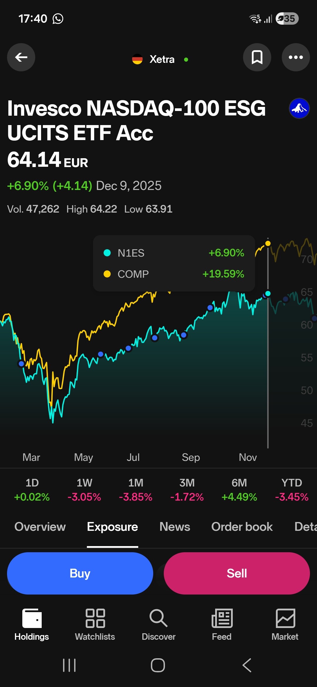 Management fee 0.25%, ETF fee €2.5/month, and ESG weighting. Still, the difference shouldn’t be this large, especially over the one-year period shown in the image. Does anyone know what the reason might be and what would be a possible replacement that tracks the Nasdaq better?