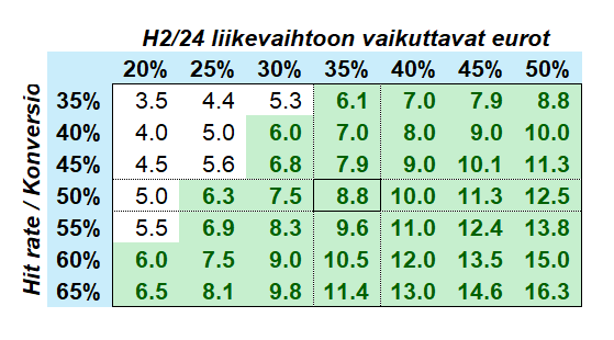 - Joustava kustannusrakenne (noin 20 % kuluista on kiinteitä ja 80 % muuttuvia).