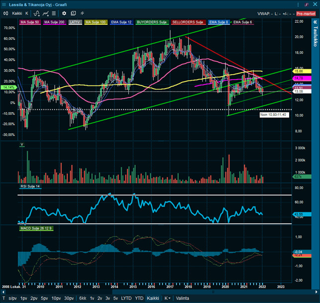 Melkoinen sillisalaatti taas luvassa, kun yrittää ennakoida L&T:n tilinpäätöstiedotetta 27.1(Lassila & Tikanoja Oyj julkaisee vuoden 2021): työvoimavaltaisena alana on todennäköistä, että ainakin sairauspoissaolot ovat lisääntyneet Omikron-variantin seurauksena, en sitten tiedä käyttävätkö vuokratyövoimaa paikkaamaan. Polttoaineen ja sähkön hinta korkealla, matalakatteisia lumitöitä on ollut tarjolla poikkeuksellisesti Helsingissäkin. Osa asiakkaista edelleen säästöliekillä eivätkä käytä samassa määrin ainakaan ylimääräisiä palveluita. Uusioraaka-aineiden hintojen kuitenkin luulisi olevan hyvällä tasolla.