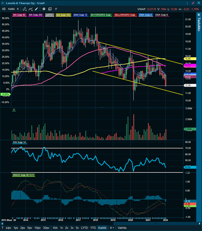 Inderes aloitti juuri Lassila & Tikanojan seuranann 12€ ja lisää-suosituksella. ![]()