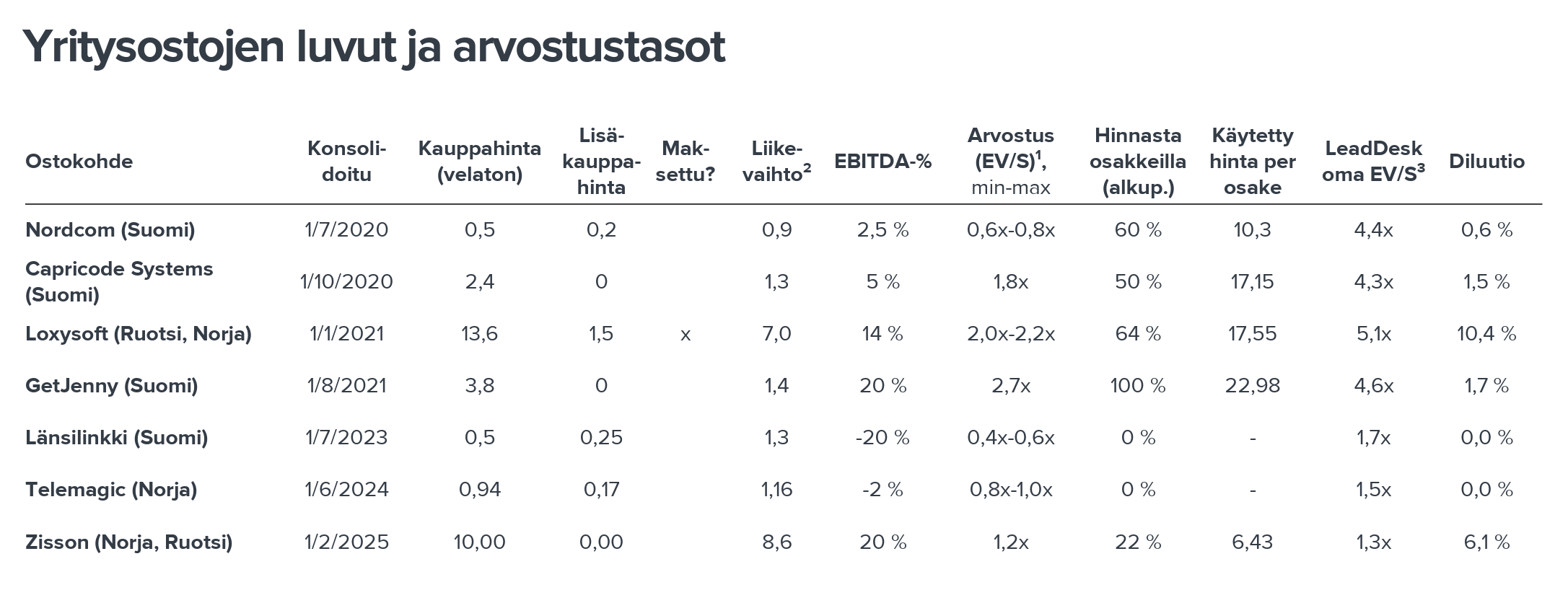 Vuoden 2025 kasvun heikkouden taustalla on myös kertaluonteisia ajureita: viime vuoden lopussa otettiin sisään heikommin kannattavien asiakkuuksien poistumaa, Q4:llä viime vuonna suuret projektitulot tekevät vertailukaudesta vaikean. Espanjassa & Hollannissa oli myös regulaatiomuutoksia jotka painoivat Q3:lla kasvua. Ja tietysti LeadDeskin fokus ei vuonna 2025 vielä ole kasvun puolella, joten myöskin odotustaso on vielä matalampi.