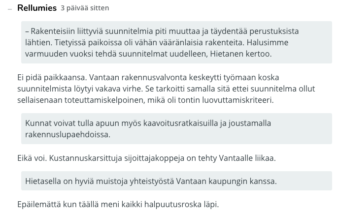 Artikkelissa tilaajan edustaja toteaa, että olivat ihmetelleet Lehdon tarjouksen alhaista hintaa. Jostakin syystä kommentti ei yllätä, ja sitten päälle vielä näinkin mittava takuuvastuuvaatimus.
