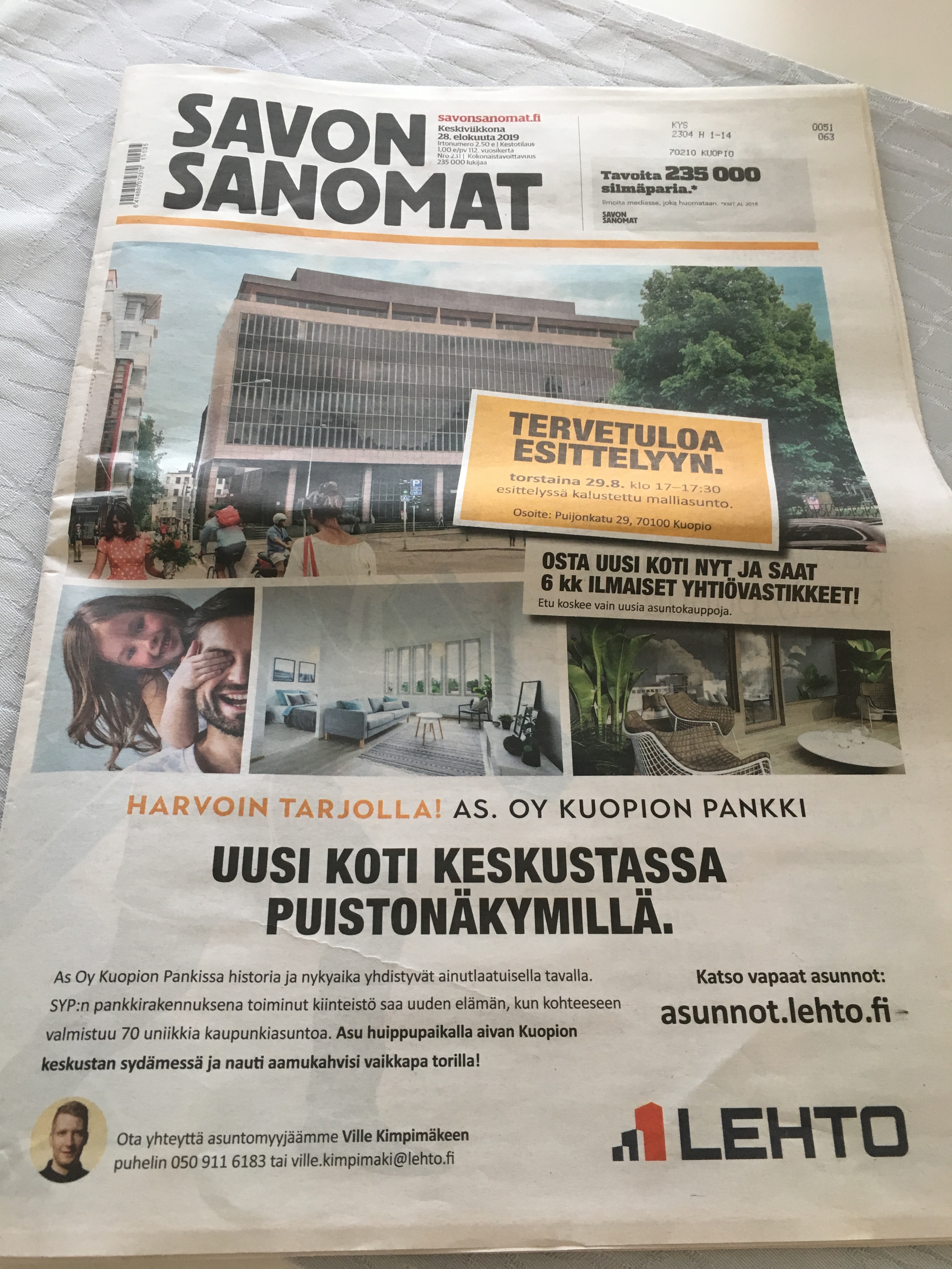 Jostain syystä tuntuu, että alkaa asuntobuumin hidastuminen näkyä myös Lehdon myynnissä kehitysalueilla (Kuopio). Nopealla vilkaisulla n. 24/75 asuntoa myymättä eli n. 5megaa tekemätöntä liikevaihtoa pelkästään yhdessä kohteessa, Kuopiossa. Kohde valmistuu parin kuukauden sisään. Sijainti on hyvä, mutta 5000€/neliö on kova hinta näillä korkeuksilla.