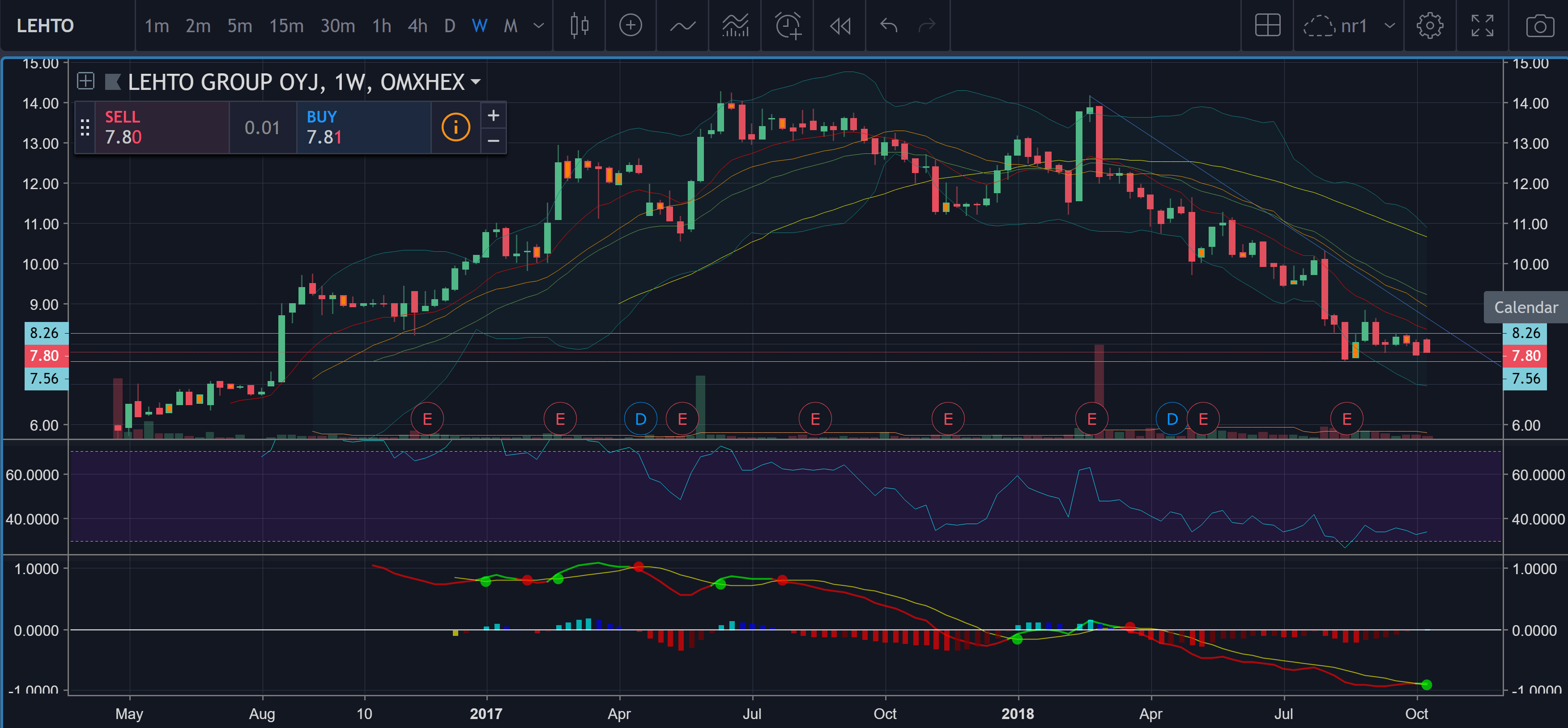 TA antaa aika lohduttoman kuvan kohteesta. Vielä elokuussa osaketta myyty aika rajusti suhteessa normaaliin kaupankäyntivolymiin. Kohteella kaikki resistanssit vastassa weekly-tasolla, vaikka tämän aamuinen nousu (johtuen varmasti Inderesin suosituksesta) saikin kurssin nousemaan MA4-tason yläpuolelle. Jokin yhtiön fundassa mättää, jonka markkinat on hinnoitellut kohteeseen enkä ainakaan itse ostaisi näin pienellä vaihdolla olevaa kohdetta ennen selvää weekly-tason trendimuutosta. Olisin laittanut kuvan TA:sta, mutta ei taida olla mahdollista. Onko jollain eri näkemys kohteesta? Osarihan on tulossa pian, joka kertoo, onko loppuvuoteen ladatut odotukset pitäneet paikkansa.