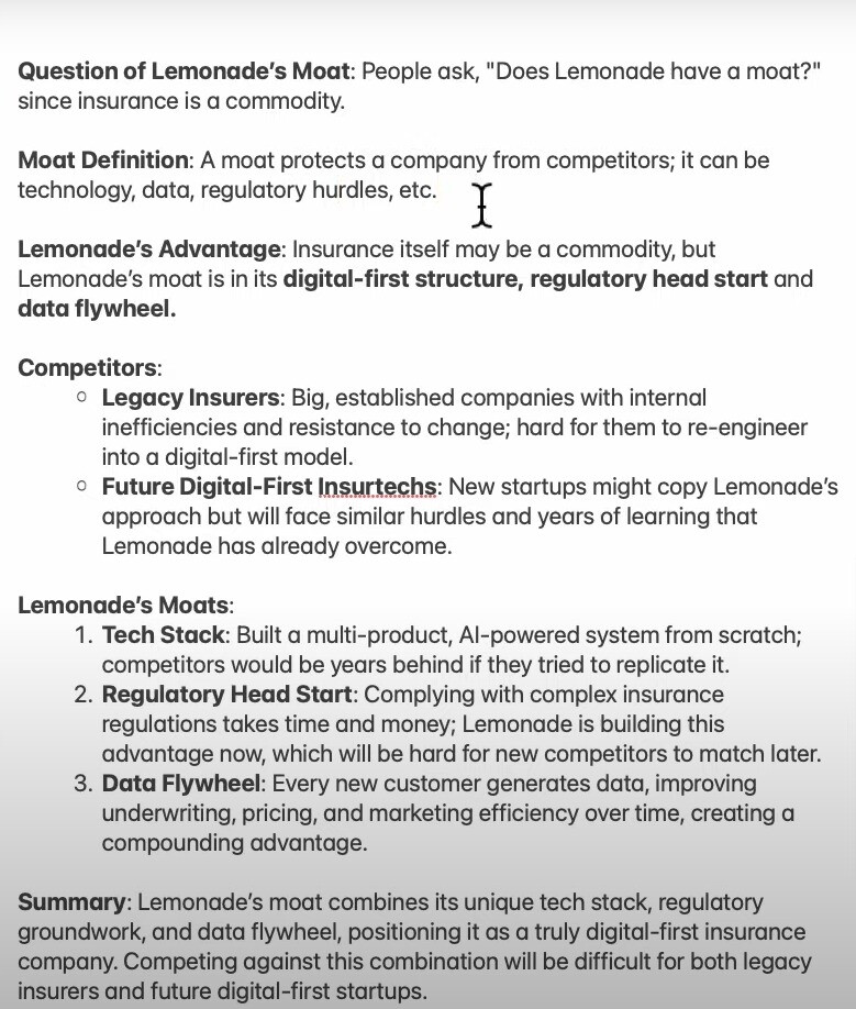 Such problems are not solved with “AI.” The advantage for a player like Lemonade, which has built its entire existence on AI and automation, is obvious. And what’s more, on ITS OWN system. They are not dependent on a third party. I believe that large insurance giants buy these services externally.