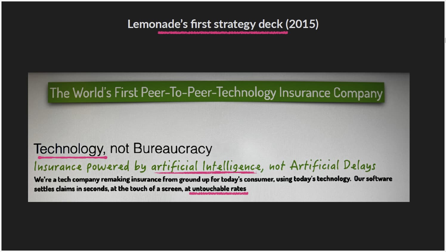 LMND kunniaksi voidaan sanoa, että he viljelivät tuota jo sijoittajapresiksissä yli 2v ennen chatGPT julkaisua, lähde. Sekä väitetysti tämä ollisi ollut yrityksen perustamisesta lähtien strategia: