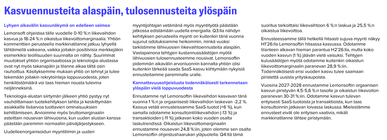 Atte has produced a new, excellent comprehensive report on Lemonsoft. As usual, this comprehensive report is accessible to everyone and is not behind a paywall.