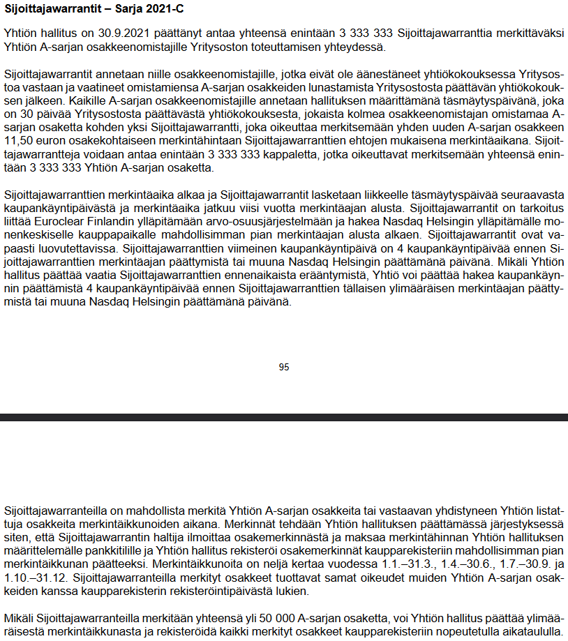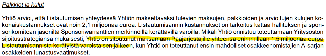 Ahlström Invest B.V., G.W. Sohlberg Ab, Keskinäinen työeläkevakuutusyhtiö Varma, Mandatum Asset Management Oy, tietyt Sp-Rahastoyhtiö Oy:n hallinnoimat rahastot, Rettig Group Oy Ab, Visio Varainhoito Oy ja tietyt WIP Asset Management Oy:n hallinnoimat varat (yhdessä ”Ankkurisijoittajat”) ovat antaneet Listautumisannissa merkintäsitoumuksia, joiden nojalla ne ovat sitoutuneet tietyin edellytyksin merkitsemään tarjottavia osakkeita yhteensä 68,9 miljoonalla eurolla tarjottavien osakkeiden merkintähintaan. Ankkurisijoittajien merkintäsitoumukset vastaavat 68,9 prosenttia tarjottavista osakkeista olettaen, että Listautumisanti merkitään kokonaan.