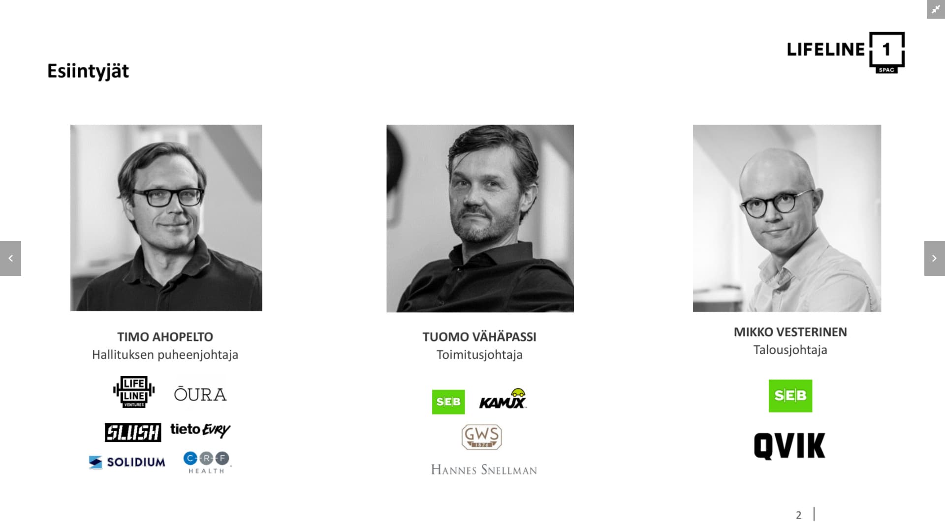 Yhtiön sponsoreina toimivat pääomasijoitusyhtiö Lifeline Venturesin osakkaat,