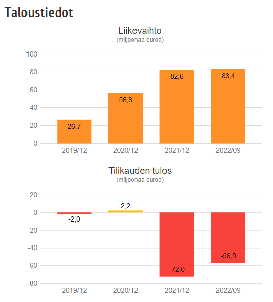 Konsernin liiketulos oli 38,9 miljoonaa euroa tappiollinen vuonna 2022, kun se oli edellisvuonna 26,1 miljoonaa euroa tappiolla. Myös Swappien nettotulos oli 39,8 miljoonaa euroa tappiolla vuonna 2022.