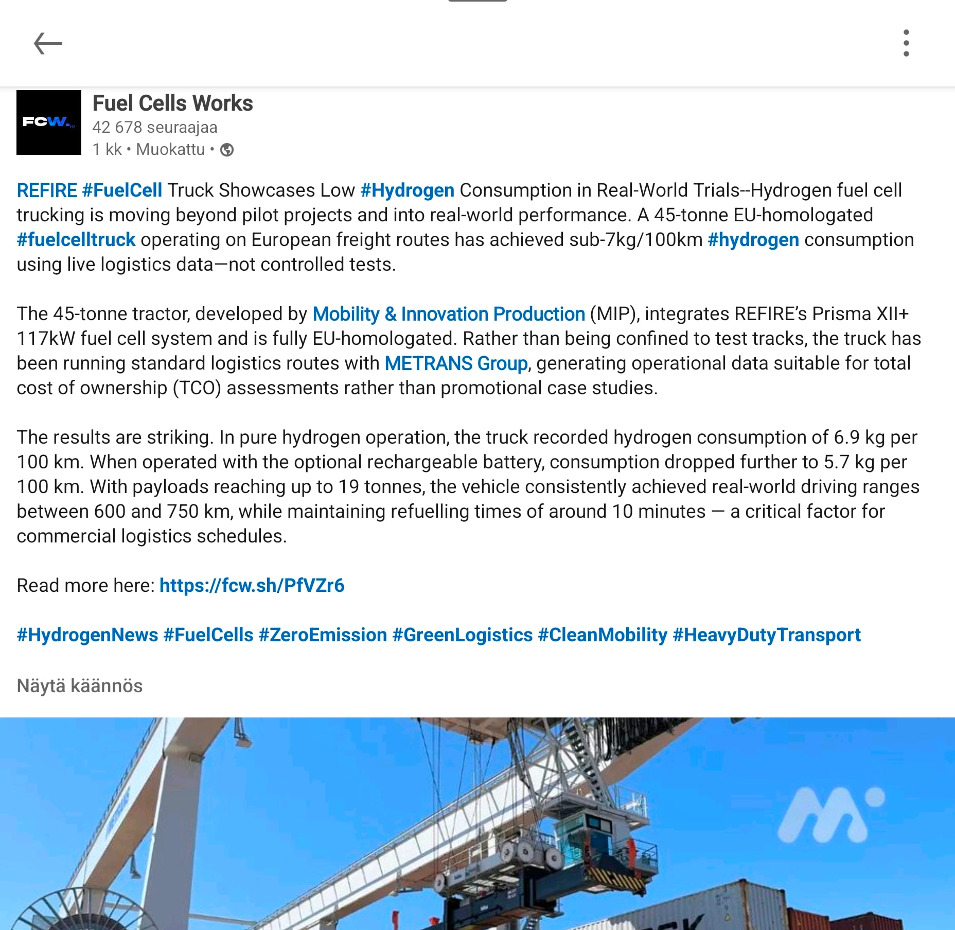 - Uusien polttokennojen tulee olla aiempaa halvempia, kestävämpiä ja energiatehokkaampia. Ja tämä kehityssuunta on kyllä toteutumassa. Postailen myöhemmin linkkejä uusien FCEV rekkojen kulutuksiin ja uuden Nexon toimintamatkaan - joka on saavutettu aiempaa energiatehokkaammalla kennolla. Toisinsanoen, pienempi kulutus leikkaa operointikuluja.