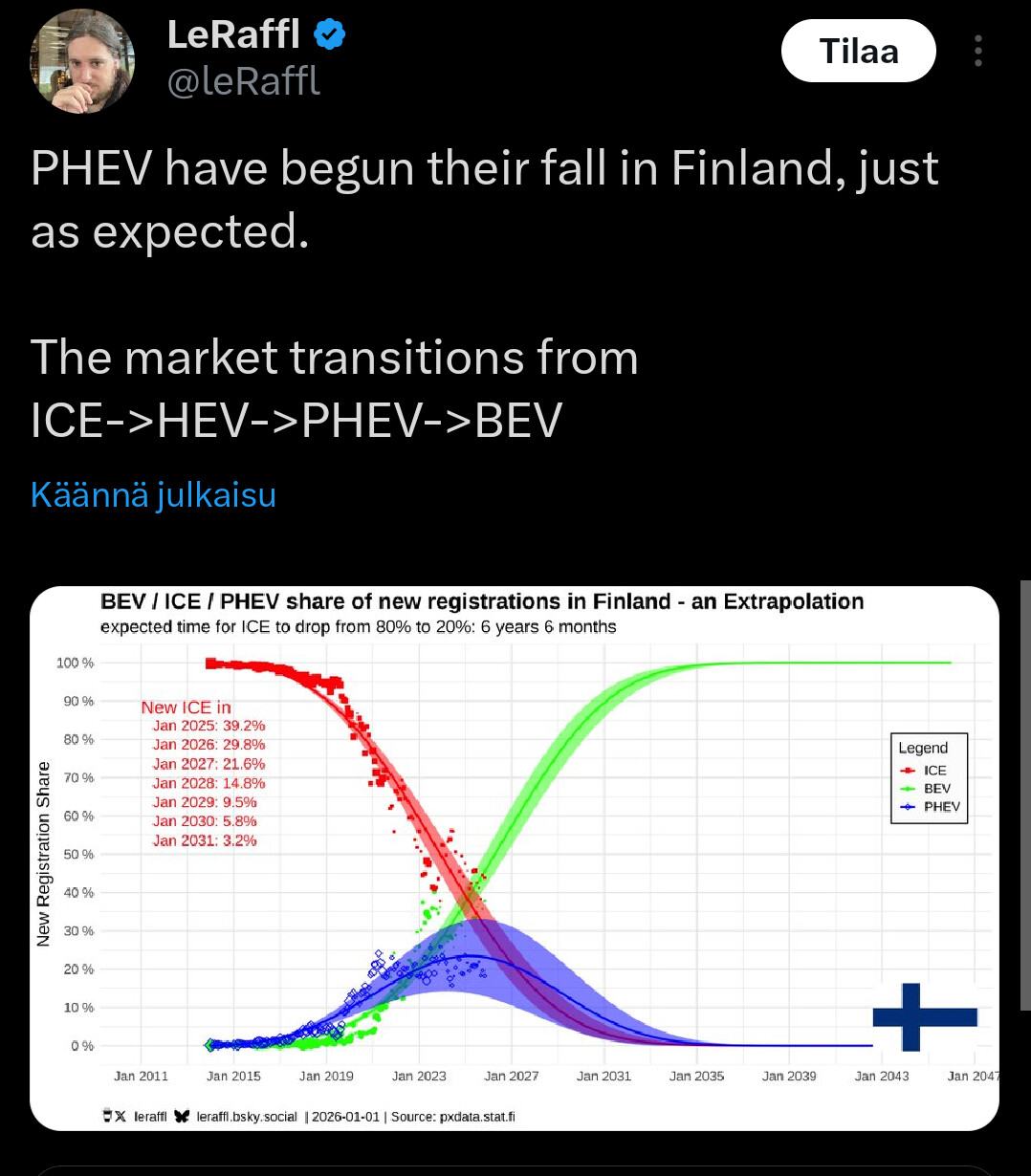 Suomessa elellään peak hybrid-kautta. Jatkossa sitten enenevässä määrin BEVejä: