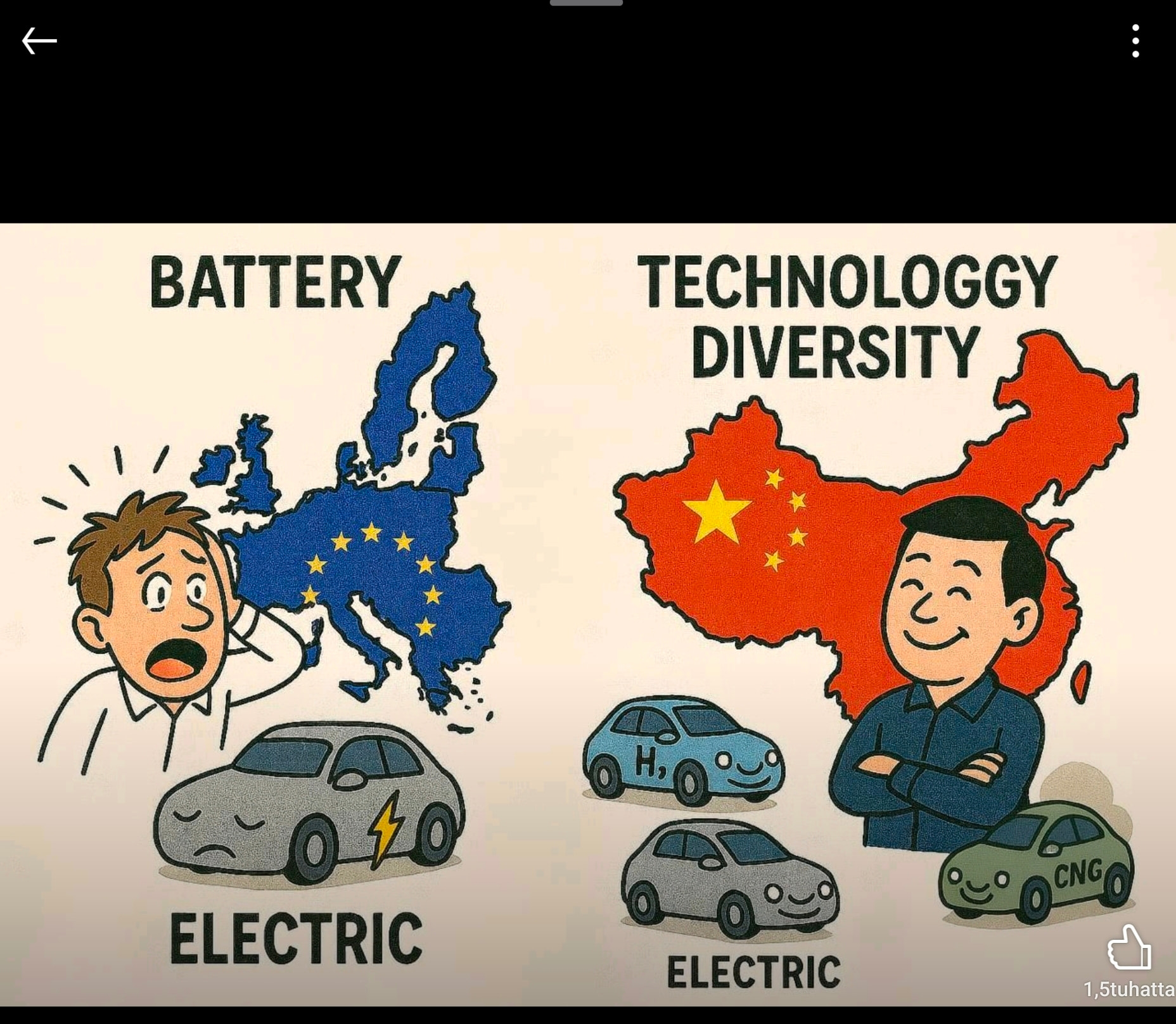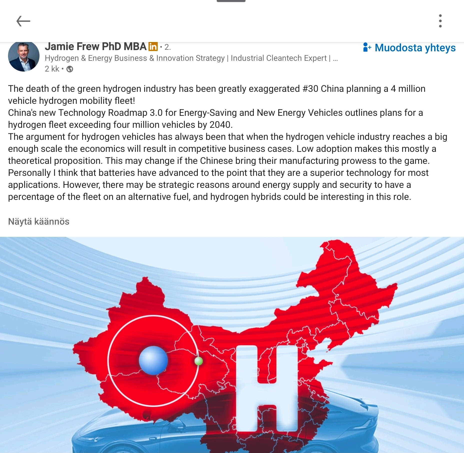 - Propaganda. Kiina on ostanut itselleen vähän aikaa uskottelemalla Euroopalle että liikenteessä on pelkästään akussa tulevaisuus, vaikka itse tekee toisin. Palataan tähän vähän myöhemmin. Sen lisäksi Trumpilla on sota uusiuttuvia vastaan, joten vihreä vety sai siitä omansa kyllä…