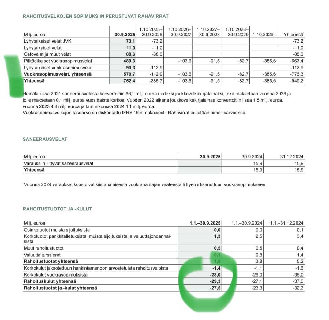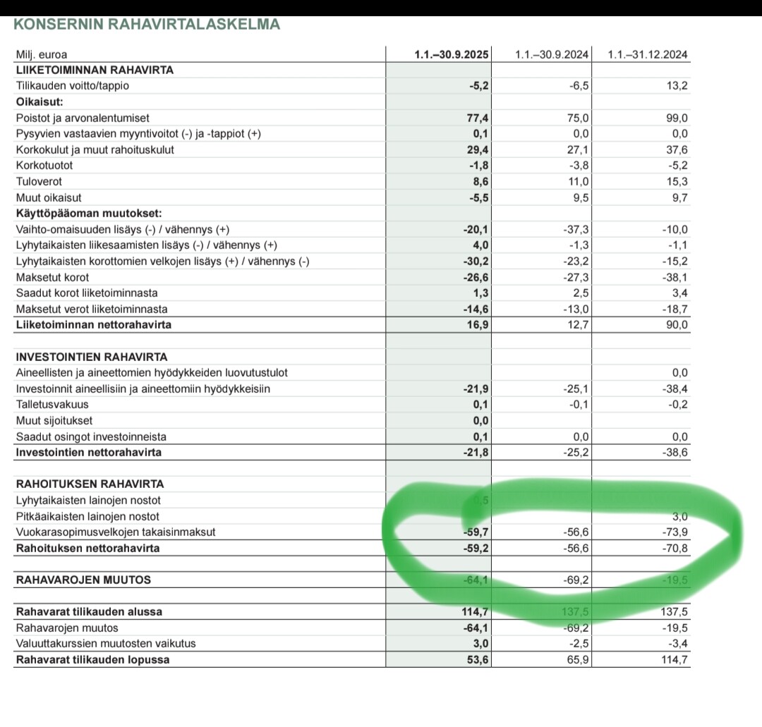 An additional nuance to this is that in the sale of the Helsinki property to Keva, 9 MEUR of the purchase price was paid by accounting for it in the “next few years’” rent. So this could reduce the cash flow impact by a million or two.