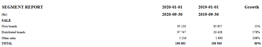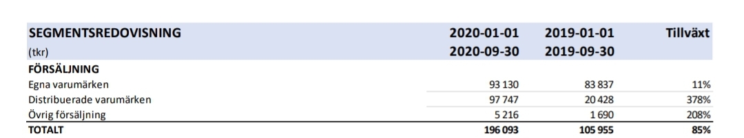 Tämän vuoden kasvu on selittynyt enimmäkseen yhtiön tekemillä jakelusopimuksilla toisten yhtiöiden brändituotteiden kanssa: