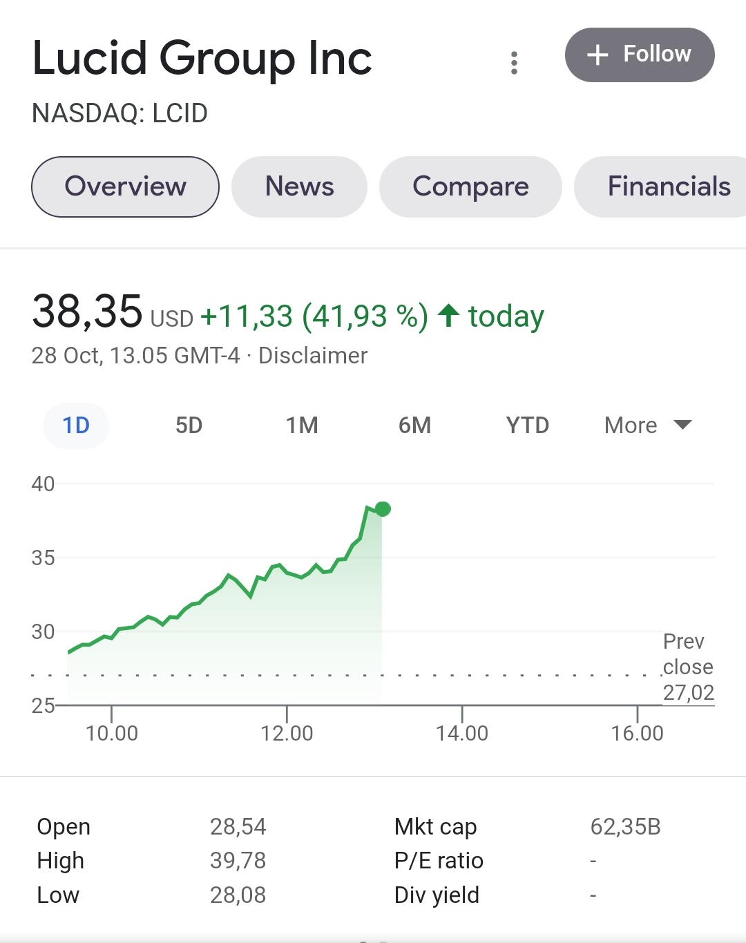 Avataas ketju uudelle sijoitusidealle. Ajankohta on mielenkiintoinen, sillä Lucid on aloittanut vihdoinkin tuotannon. Lucid listautui Nasdaqiin 07/2021 käänteisellä sulautumisella.