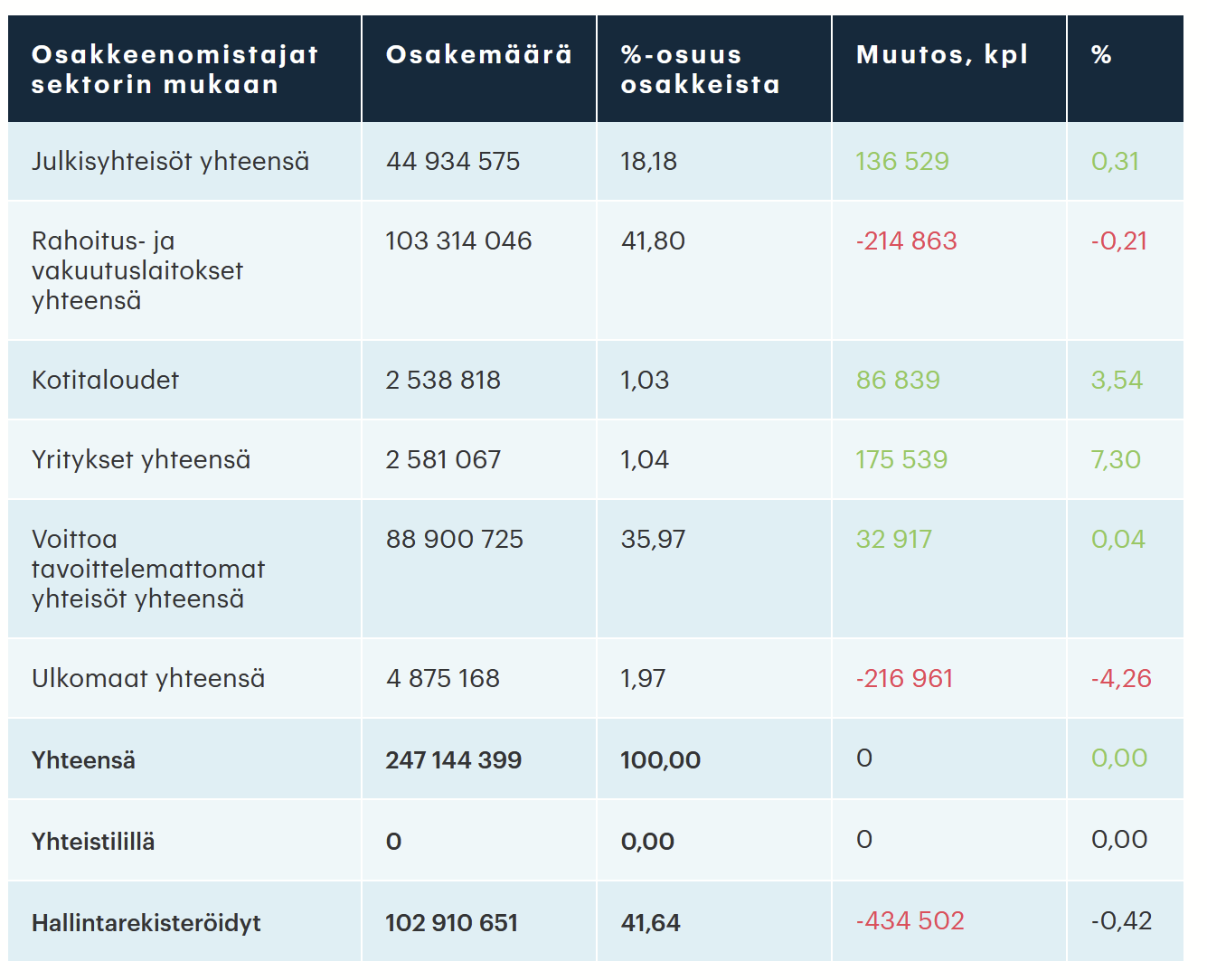 Jeg forsøgte at lære lidt om Kojamo i dag, da tråden fangede mit øje. Kursen er virkelig faldet markant. Hvad jeg hurtigt kunne se, har fagforeninger og et par pensionsforsikringsselskaber været nettosælgere det seneste år. På købersiden har der været nominee-registre og fonde.