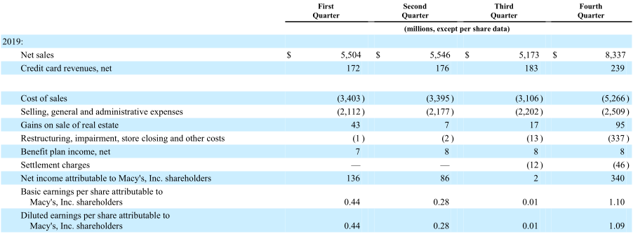 Tässä Macy’sin tuloslaskelmatietoja viime vuodelta: