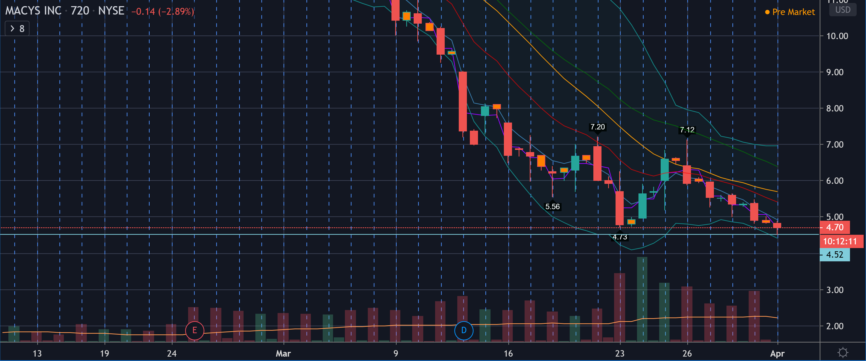 Pre marketissa käytiin jo 4.52 tasolla. Monthly RSI 23.25 - ylimyyty kaikilla muilla tasoilla paitsi 4H.