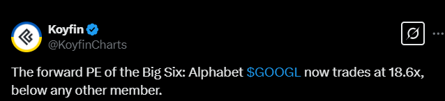 Here is a tweet about the forward-looking P/E ratio of mega-cap companies.