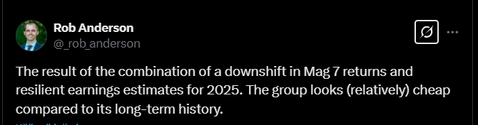 Then a slightly different picture on the same topic that @Sijoittaja-alokas linked from X. MAG7 certainly doesn’t look attractive at these forward P/E levels.