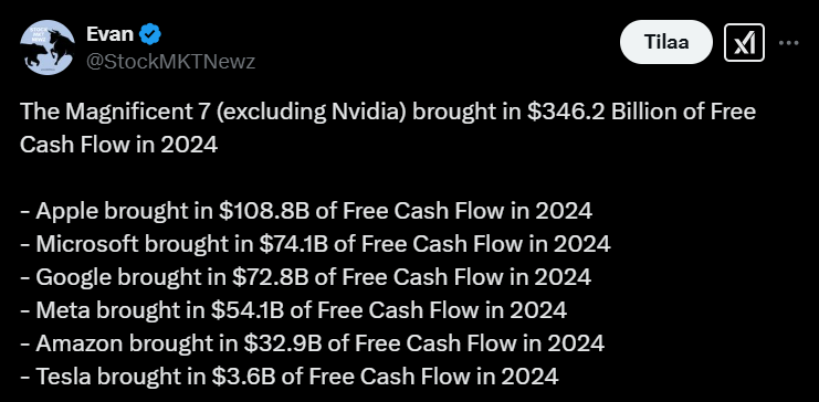 The Magnificent Seven is being compared this time in terms of free cash flow ![]()