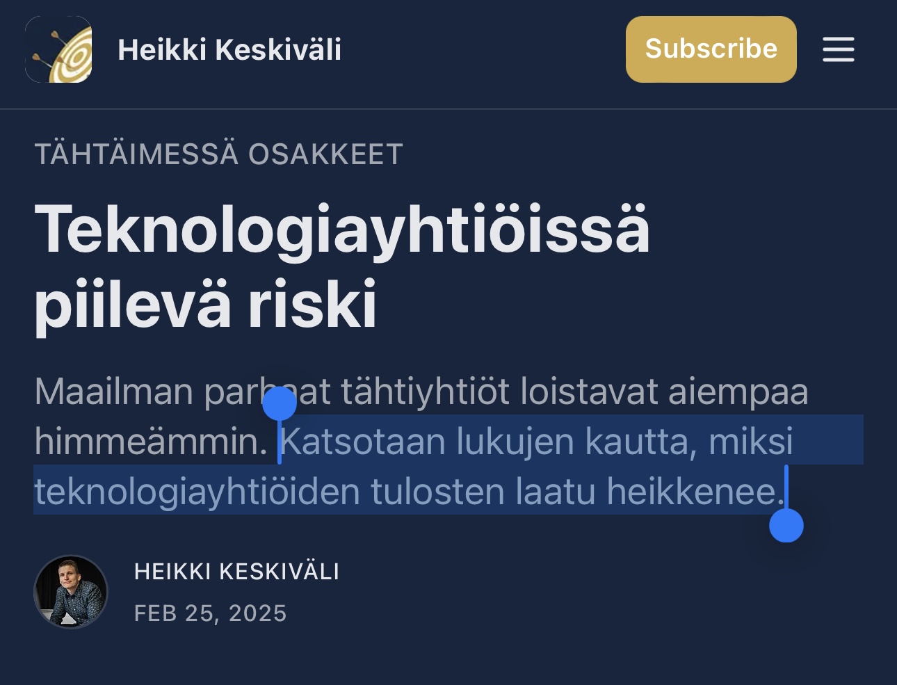 Timo Heikkilä has closely reviewed the performance of tech giants, also from an AI perspective. ![]()
