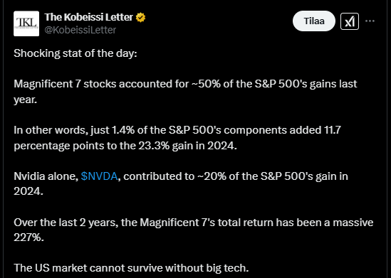 SalkunRakentaja’s article on how, according to Bank of America investment strategist Michael Hartnett, the dominance of the Magnificent Seven is coming to an end. ![]()