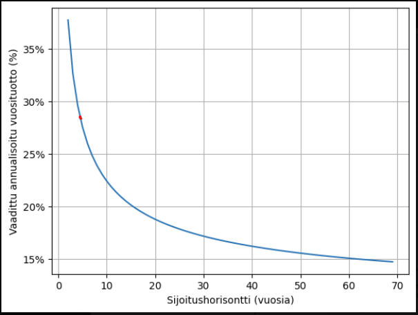 Of course, the outlined model would provide a rough indication based on common sense. The more you beat the index, the less time you need to do it to declare yourself an alpha-Ilmarinen.