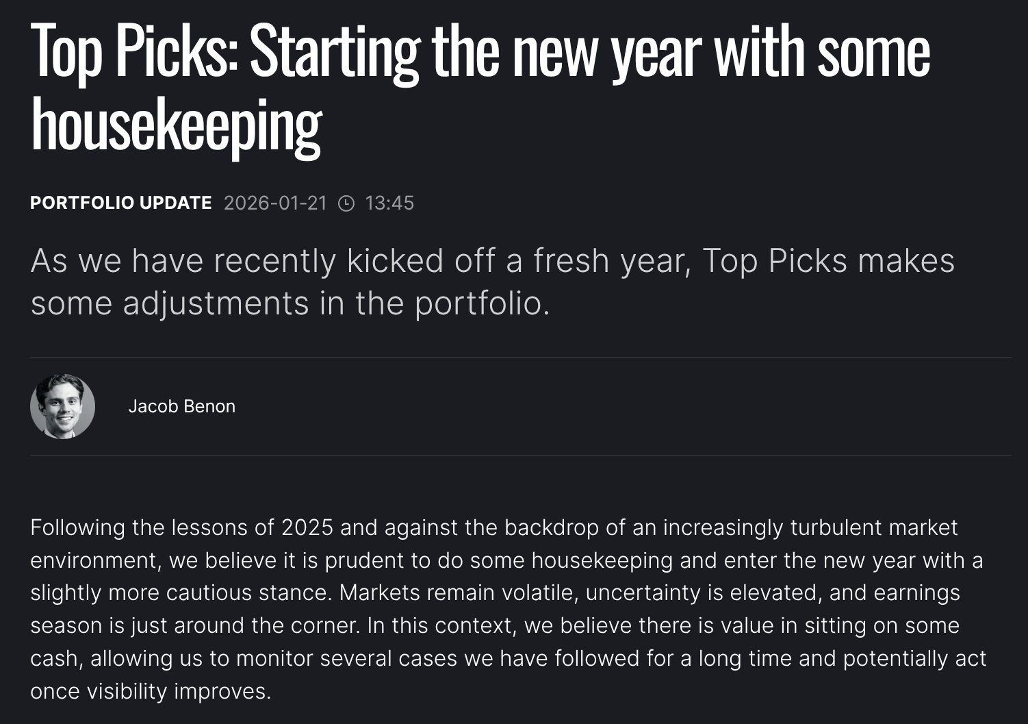 Perhaps it should be further emphasized that this rule, like all our trading rules, applies to the model portfolio just as it does to the staff in general, and their purpose is to ensure that in all situations investors have the opportunity to act first (blackout period after reports / while research is ongoing) and, on the other hand, to ensure that nothing is done that conflicts with the recommendation or a possible future recommendation. There is absolutely no “internal recommendation”; rather, as stock prices change, a situation may arise where, in practice, the recommendation or target price needs to be updated (or the price needs to change again), and we do not trade before that. It is not enough that an analyst thinks it would be wise to sell (or buy); the public message must be clearly aligned with that.