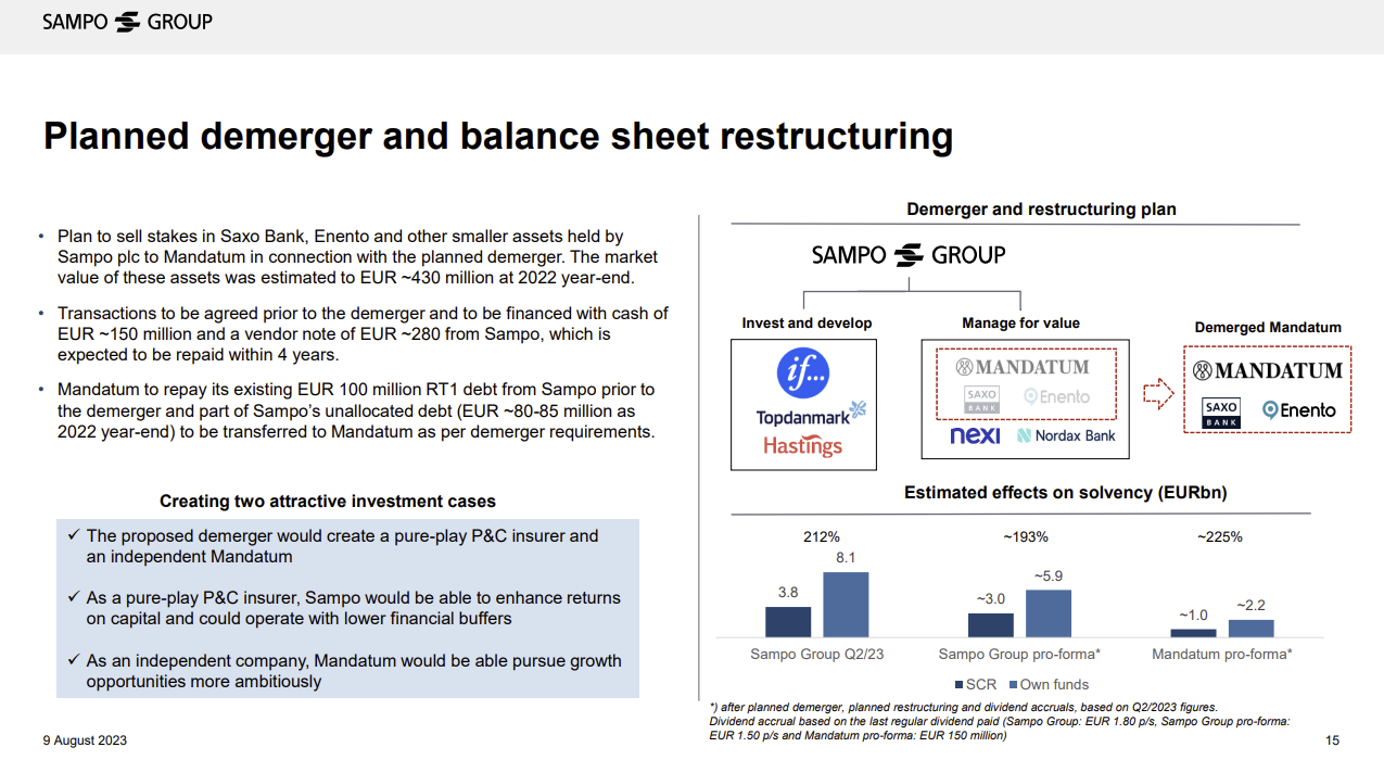 - Mitä eriyttäminen tarkoittaa Sammon ja Mandatumin kannalta?