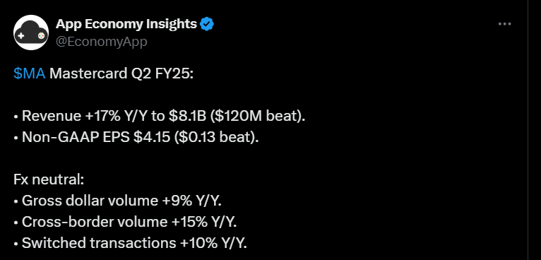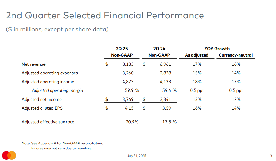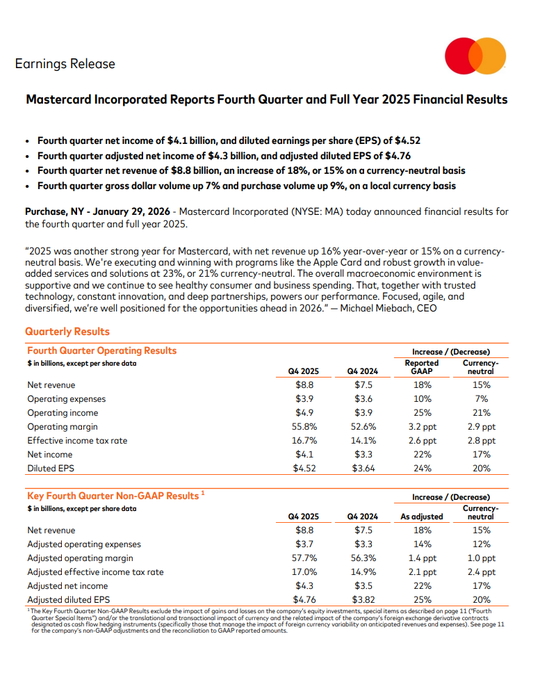 Osakkeenomistajia muistettiin tuttuun tapaan omien osakkeiden ostoilla ja osingoilla. Mastercardin näkymät pysyvät vakaina ja yhtiö jatkaa tietysti kannattavaa kasvuaan.