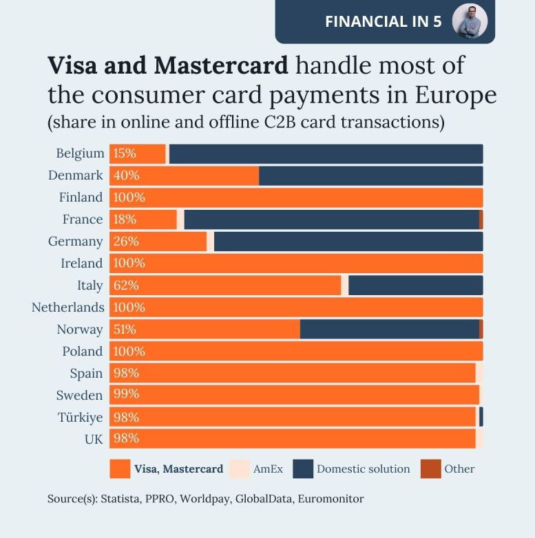 Molemmat käytännössä painavat EU-alueella rahaa, kun jokainen transaktio heidän kauttansa antaa tuottoisan siivun.