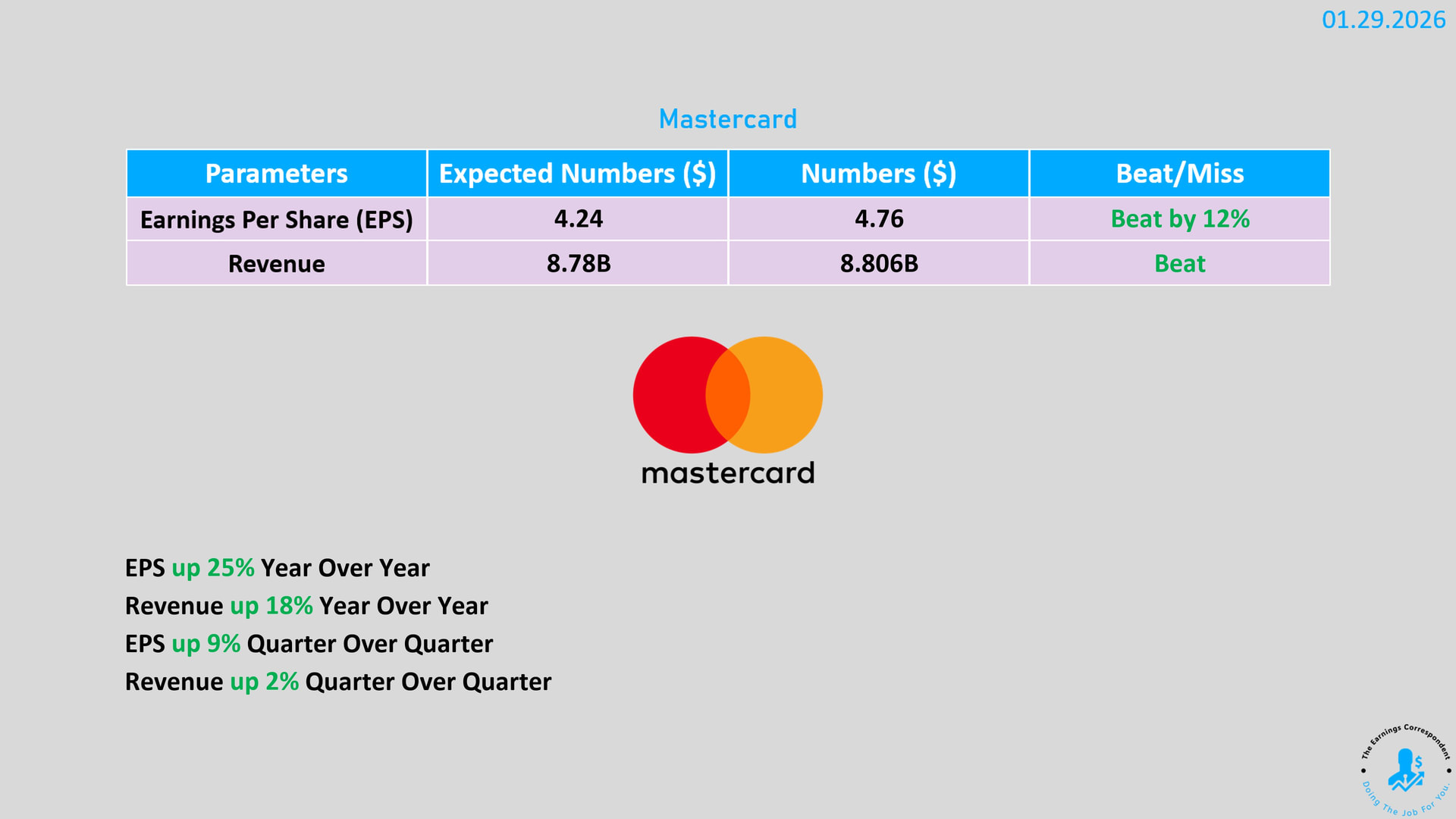 Nopeasti katsottuna näyttäisi siltä, että MC:llä pyyhkii aika lujaa, ja viime vuoden vika kvartaali meni kliffasti. Tulokset ylittivät odotukset reilusti, koska ihmiset käyttivät korttejaan ahkerasti ympäri maailmanlajuisesti.